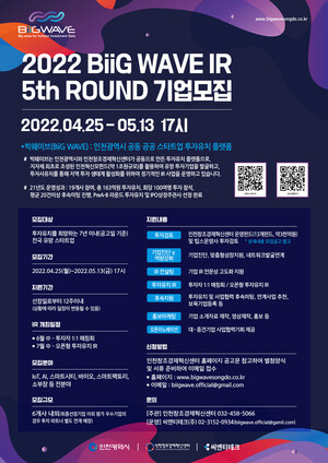 仁川広域市(パク・ナムチュン市長)主催、仁川創造経済イノベーションセンター(キム・ソクジュンセンター長)主催のビッグウェーブIR(投資誘致事業計画発表会)が参加企業を募集している。 Big Waveは、仁川地域のベンチャー企業の育成と仁川投資エコシステムの活性化を目的として、仁川広域市と仁川創造経済イノベーションセンターが共同で設立した投資会社発掘プラットフォームブランドです。発足以来、計4回開催されている。地方自治体初の公的基金である仁川イノベーション基金の運営機関である仁川創造経済イノベーションセンターは昨年、仁川広域市とビッグウェーブのプラットフォームを活用した企業19社を発掘し、総額163億ウォンの投資誘致を達成した。ビッグウェーブツー}