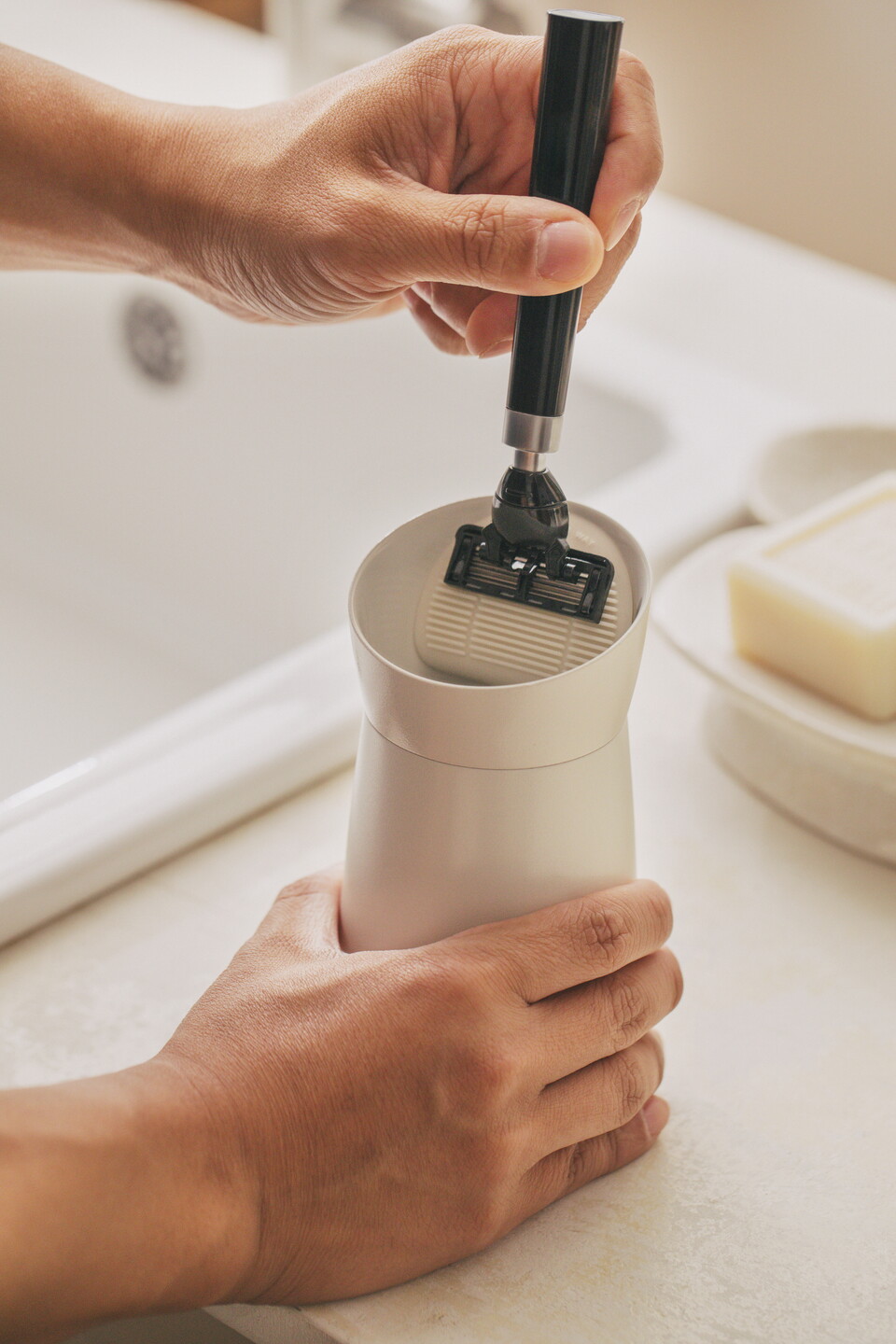 Laser Base は、超音波振動技術と自社開発のシリコン ブラシを使用して、カミソリの刃の間に挟まった異物を完全に除去します。これにより、カミソリの刃の衛生状態が改善されるだけでなく、カミソリの刃の寿命が平均 2 週間から最大 6 か月まで延長されます。いつでも清潔なカミソリ刃で剃れるので、男性の髭剃りがより快適になります。